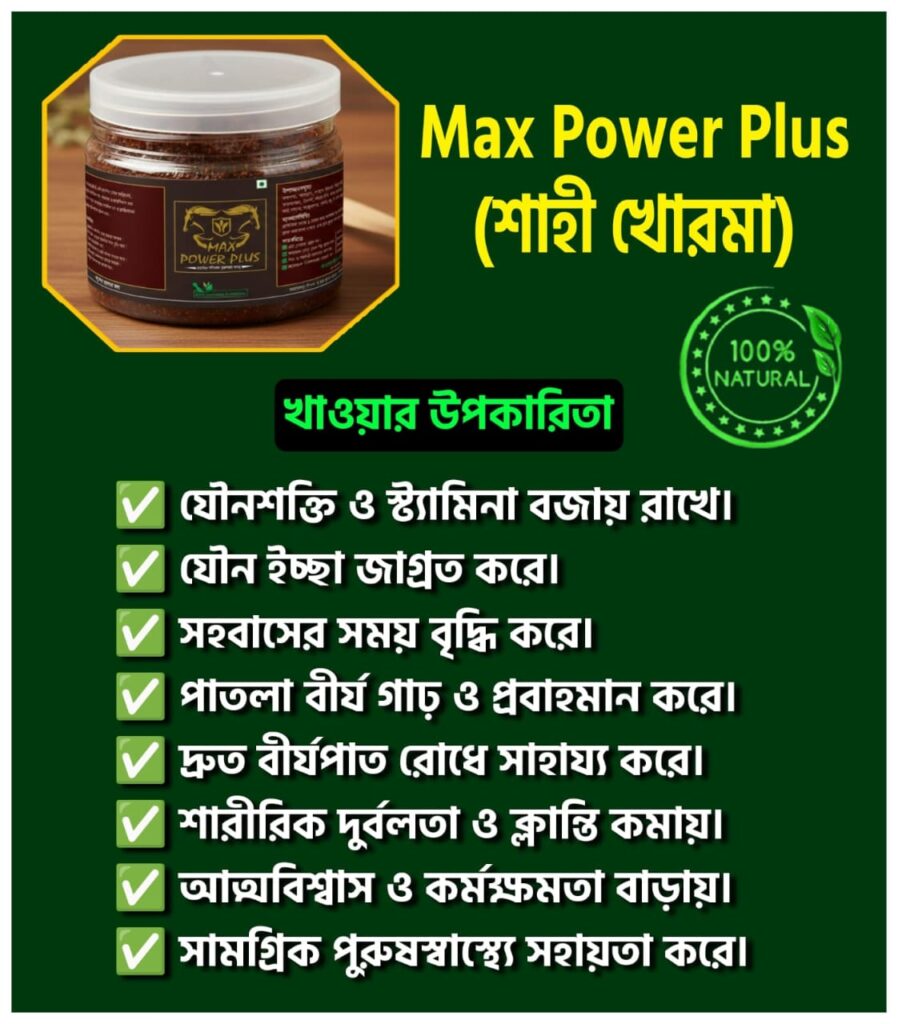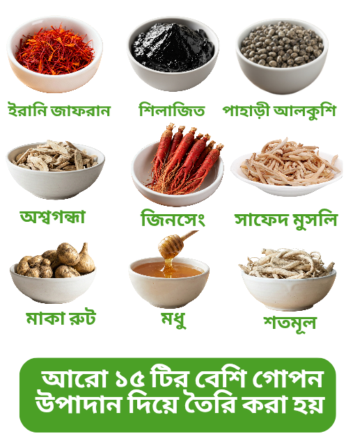 এই প্রোডাক্টটি শরীরের প্রাকৃতিক শক্তি বাড়াতে সাহায্য করে, মানসিক চাপ কমায় এবং যৌন দুর্বলতা, শীঘ্রপতন বা উত্তেজনার অভাবের মতো সমস্যা দূর করতে সহায়ক। এটি পুরুষদের স্ট্যামিনা এবং আত্মবিশ্বাস বাড়াতেও কার্যকর।